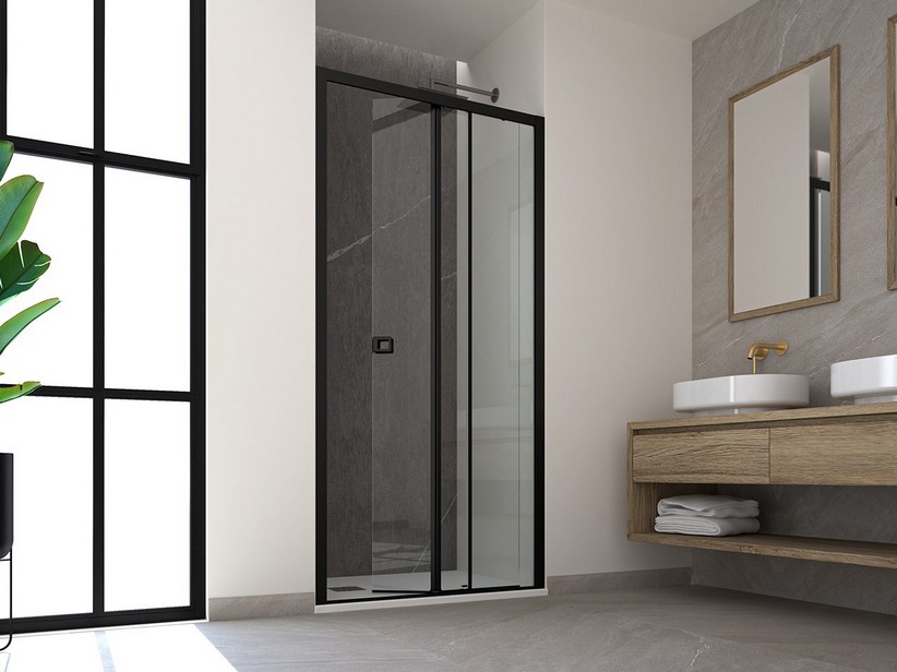 Miro' Duschtür für Nische cm 100 Rechts Glasstärke 6 mm Transparent Profile Schwarz matt