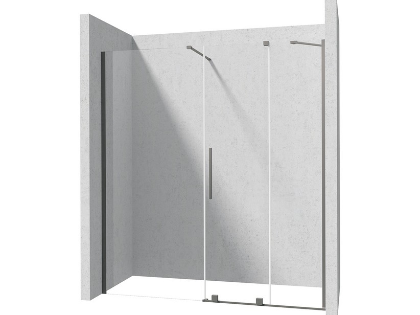 Schiebetür Prizma, feste Seite in Linie 230 cm H195 Erw 138/140-86/88, Glas 6 mm transparent, Titan