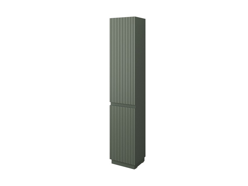 FARO Stand-Hochschrank 2 Türen Soft-Close cm Br.35xTi.30xH185 mit 1 Ablage aus Holz und 2 Ablagen aus Glas, Struktur aus MDF beschichtet mit PVC, gerippte Ausführung Grün matt