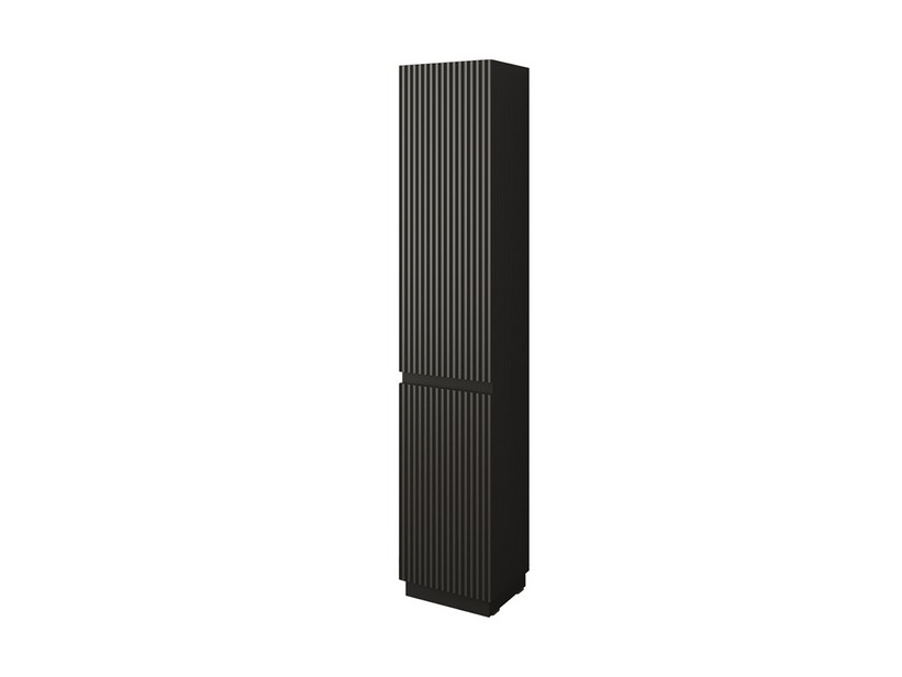 FARO Stand-Hochschrank 2 Türen Soft-Close cm Br.35xTi.30xH185 mit 1 Ablage aus Holz und 2 Ablagen aus Glas, Struktur aus MDF beschichtet mit PVC, gerippte Ausführung Schwarz matt