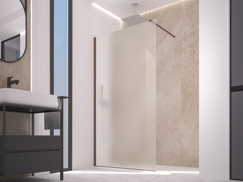 ZEN Color Walk-In-Dusche 86-88 cm H200 umkehrbar, geätztes Glas Stärke 6 mm – Profile aus antibakteriellem und Antischimmel-PVC Oberflächenausführung Chocolate