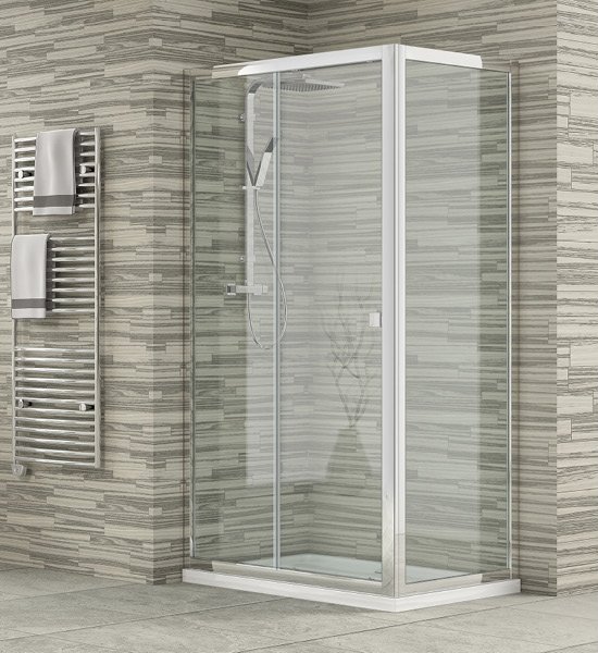 - Eckduschen mit Eingang über Ecktüren, die sein können